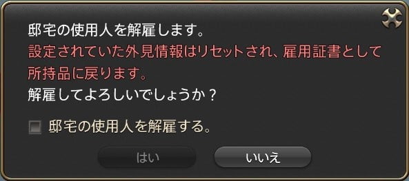 所持品に入れる場合のみ、解雇するかどうか聞くウィンドゥが出ます。